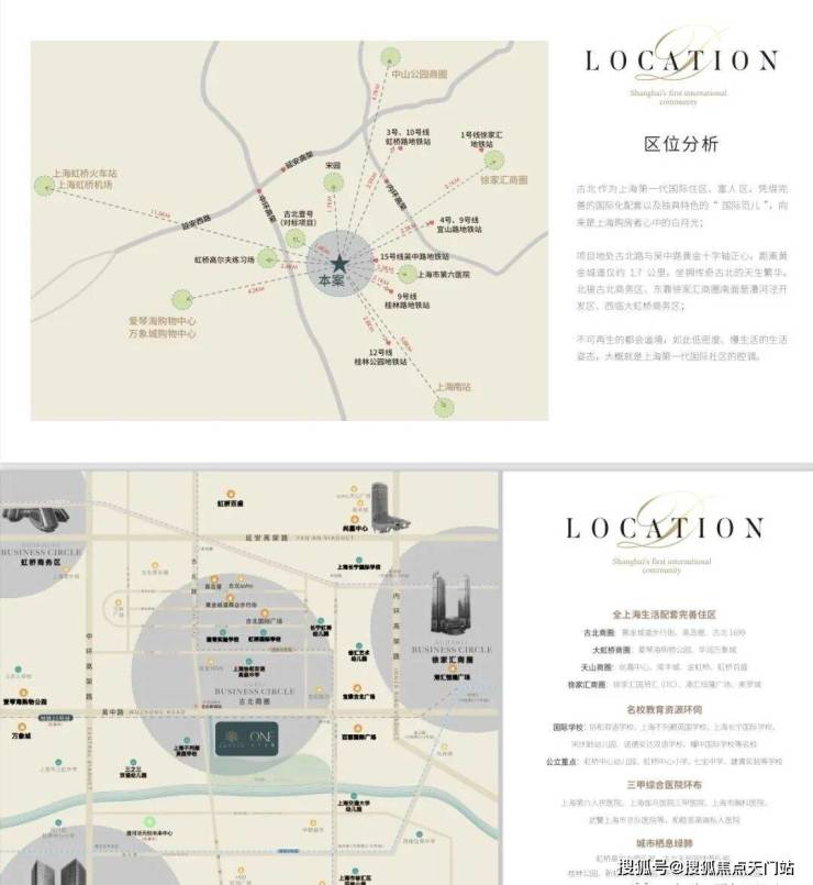 一、区位和交通:1.1、我们地处闵行长宁交界的古北板块,项目依托虹桥交通枢纽和长宁徐汇商圈,交通便利配套成熟,是上海第一个大型高标准的国际豪宅社区。