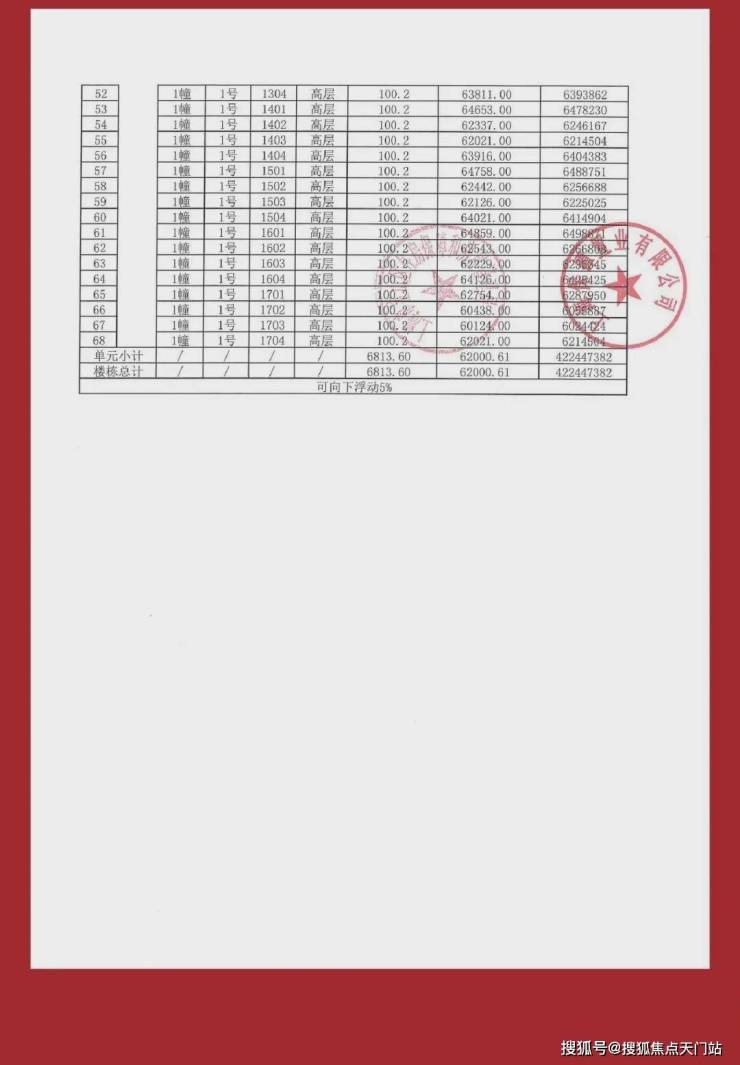 一房一价表: