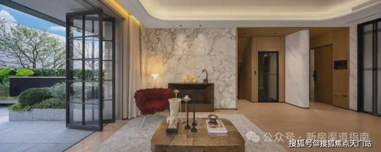 接下来是千万级别的酒店式高奢门头打造,二期的门头甄选688块珍贵的白雪公主玉石,恢弘气派,除了门头,立面和中间的景观亭都沿用大量玉石,彼此之间不再具有割裂感,而是融合打通。