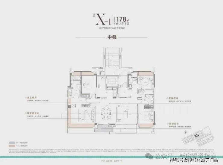 中平户型以四开间朝南的IMAX级采光面,打造出堪比市区豪宅的尺度感。4房4飘窗2阳台的设计,配合双套房布局,一共有三个套房,让每个家庭成员都享有独立私密空间。