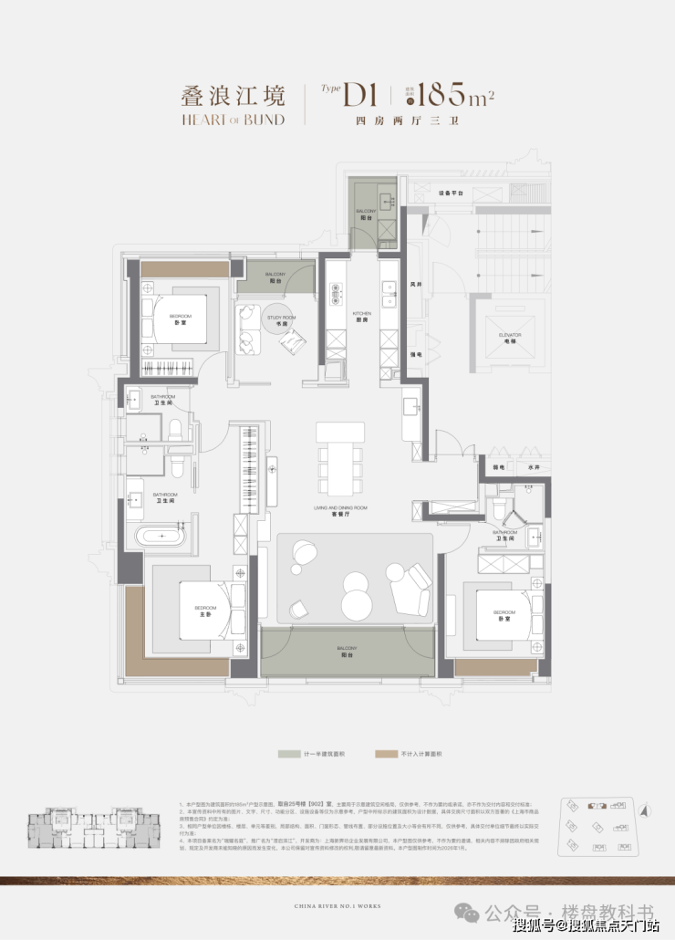 当然,作为一线滨江首个新规后作品,项目建面约185㎡户型的设计也是亮点满满。