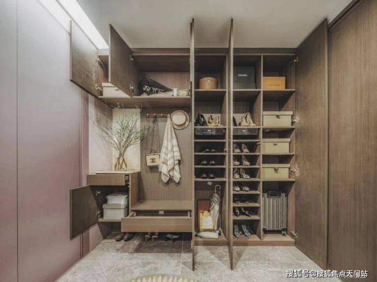 出电梯后全明的空间不仅可以作为私人入户玄关,让你告别空间共享,私密性拉满的同时还增加了隐形 实用面积。