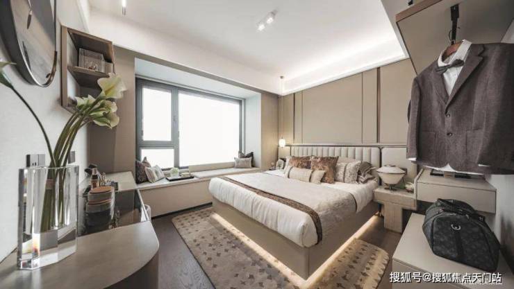 尤其奢阔主卧,南向开窗面积大,床尾支持放置梳妆台,甚至衣柜。
