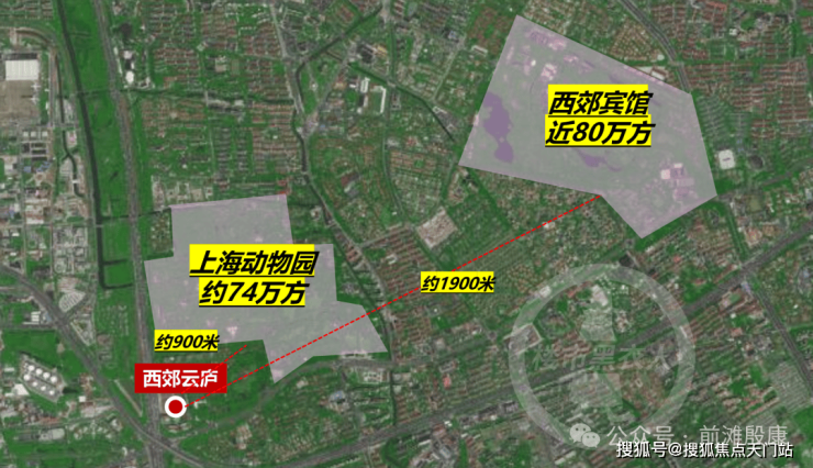 在卫星图上看得清楚,「西郊云庐」周围的整体绿化覆盖率相当高。两个大公园体量合计就有约154万㎡,已经超过上海市区TOP1的世纪公园。