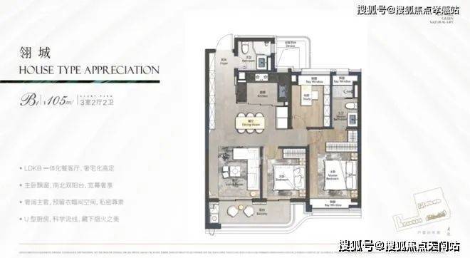 本次项目主推建面约105㎡3房2卫: