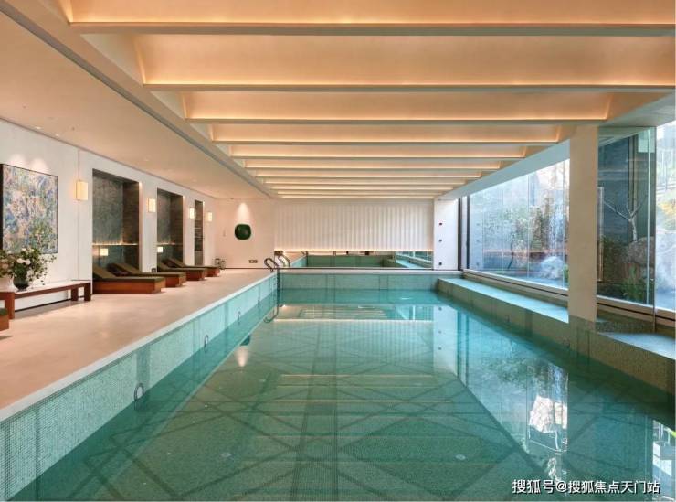 恒温泳池:采用全景落地玻璃墙,巧妙消融了室内与自然的界限。畅游其间,庭院山石如天然屏风倒映眼前,仿佛在自然山水间徜徉。