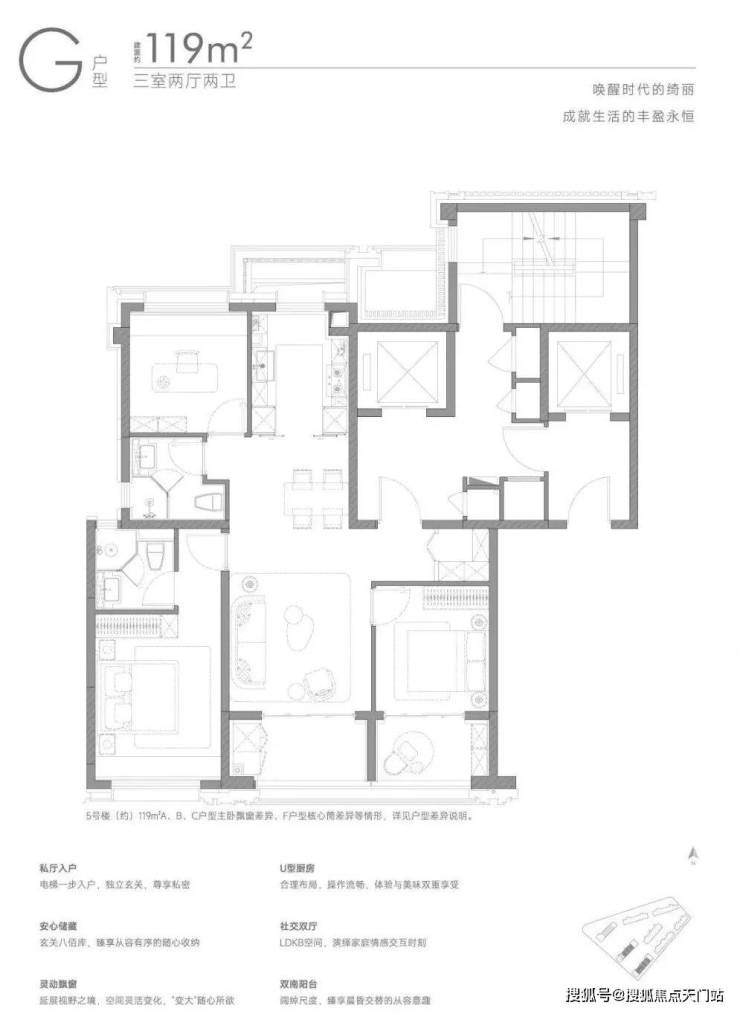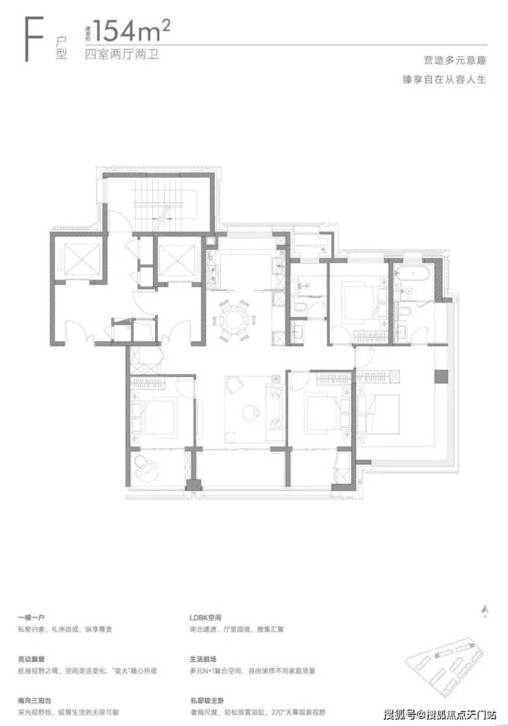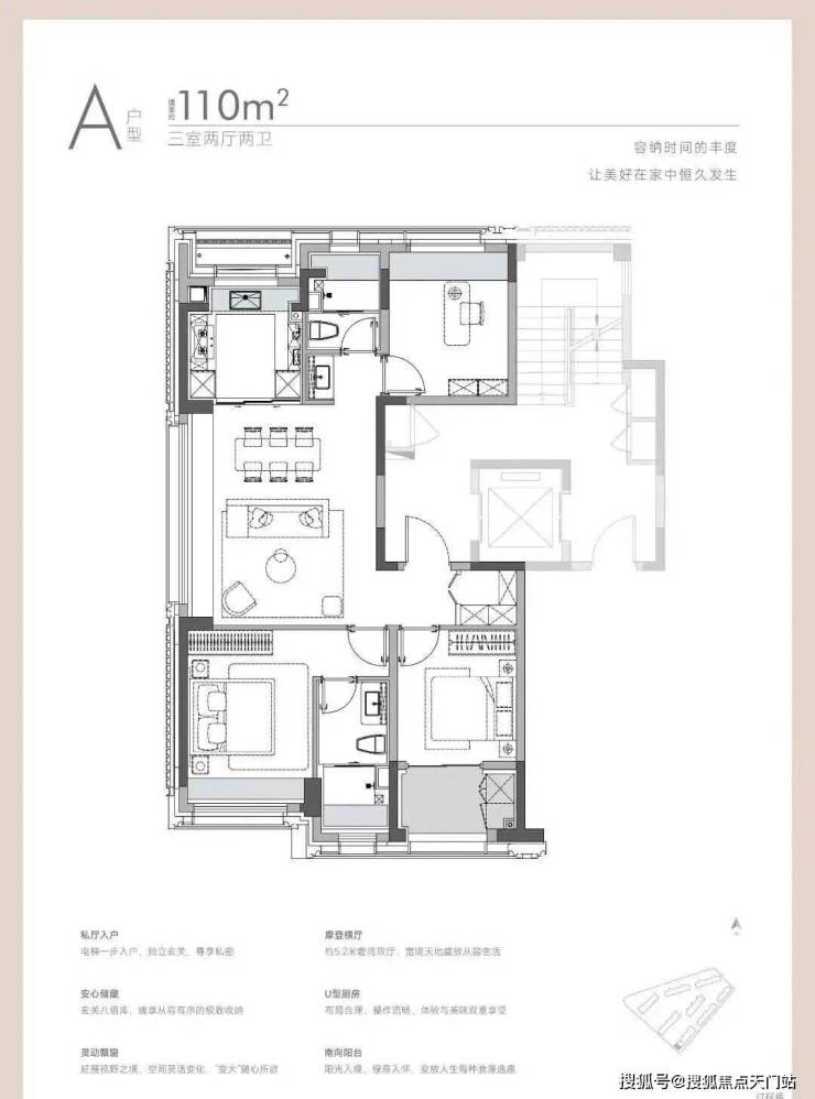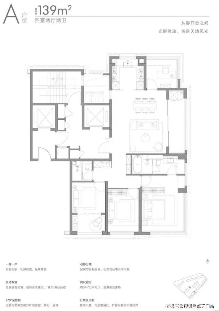 部分楼栋设有架空层,社区设置下沉式庭院、泳池会所,并配建部分社区配套与公共租赁住房。产品上也引入270°转角玻璃、双阳台、N+1灵动空间等设计。