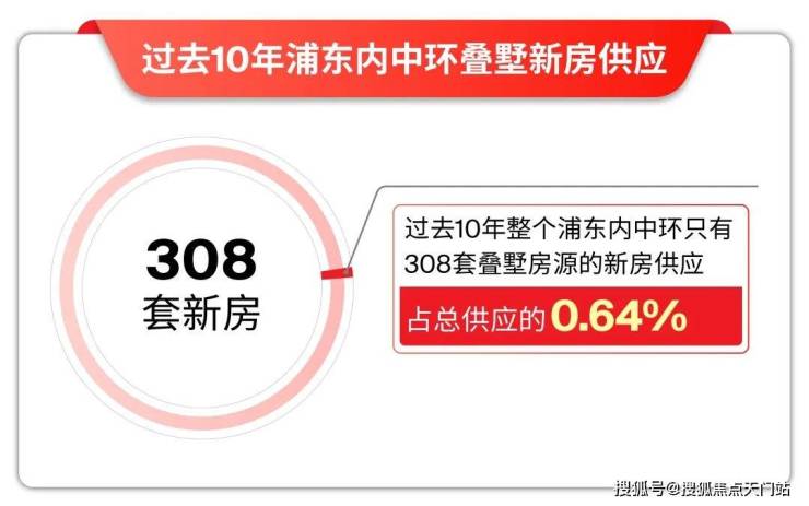 过去10年整个浦东内中环只有308套叠墅房源的新房供应,只占总供应的0.64%!