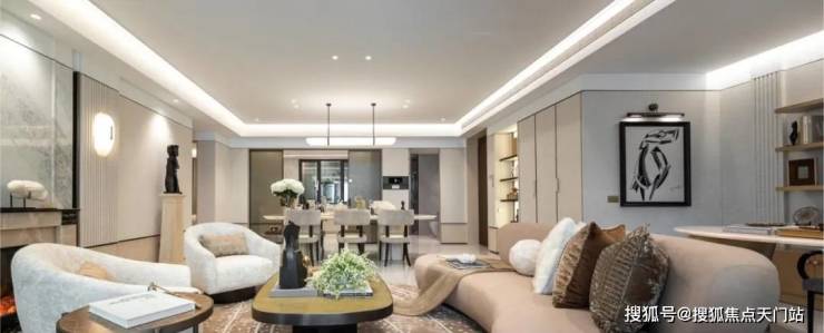 超大尺度的客餐厅,全明厨房,通过巧妙的布局,将居住、生活、社交等功能完美融合;