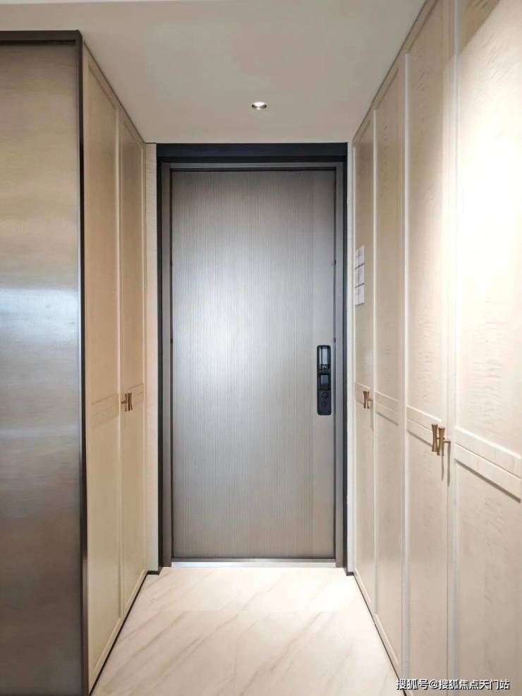 建面约120㎡户型的过道的木饰面以及玄关储物柜门均是由 影木打造。