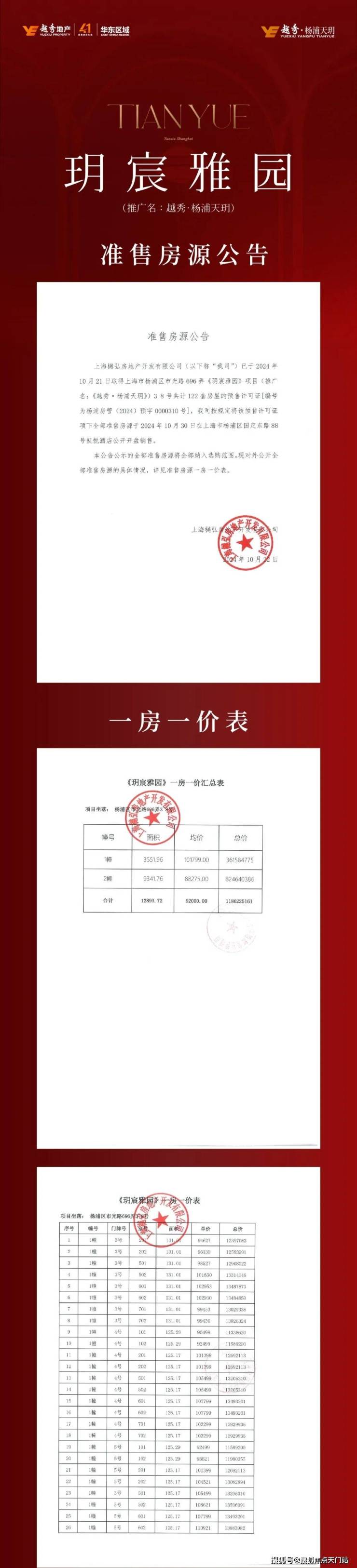 一房一价表如下