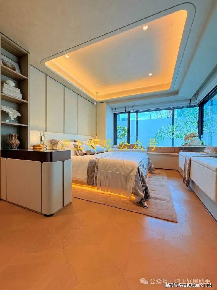 项目部分户型的主卧不仅有约270度无柱飘窗,甚至还有户型做到了上海首个最大连续约12米无柱化设计的全景舱户型!