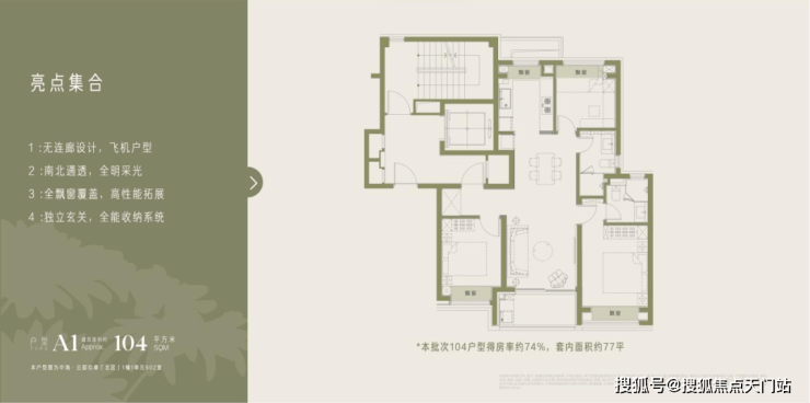 值得注意,本次加推的104㎡是整个北区最好的104㎡