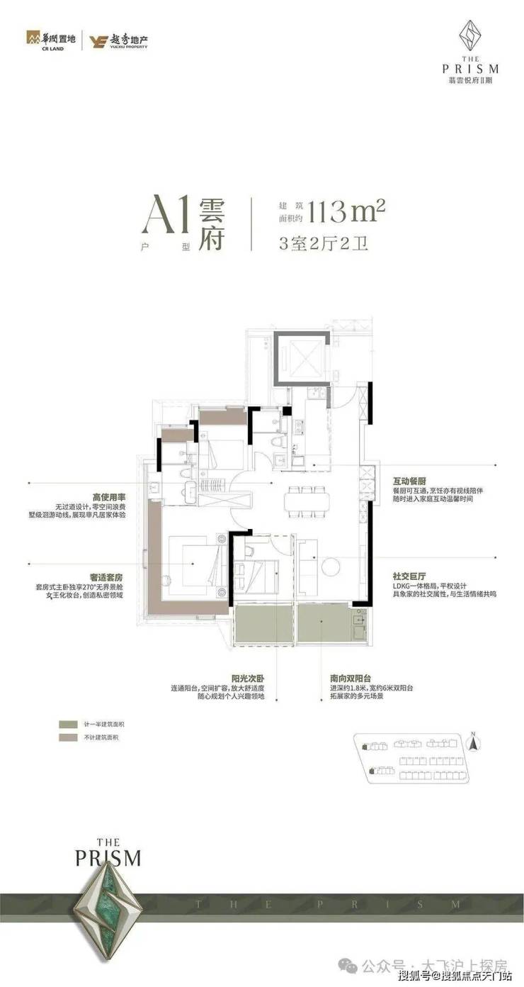 重点看一下A1约113㎡3房2厅2卫(边户):