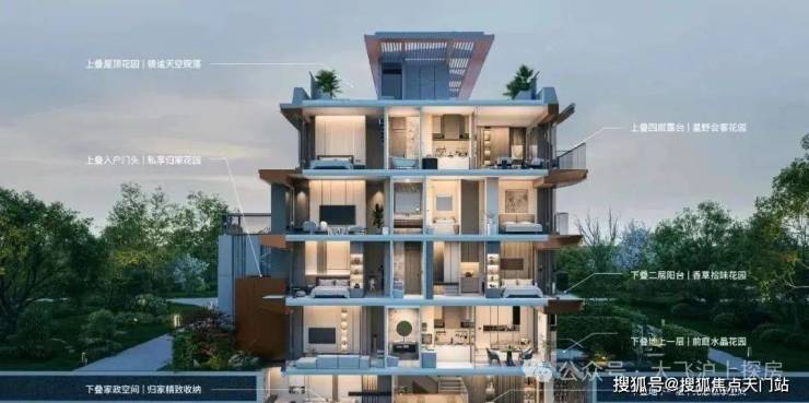 这样的设计不仅让建筑外观更轻盈、更具国际化审美, 更赋予室内“无死角”超绝采光。③户户皆爆款,层层有惊喜:下叠, 挑高的 宽绰地下室+公共绿地,真正的别墅享受:在所有叠墅户型中,下叠往往是更具“墅感”的。