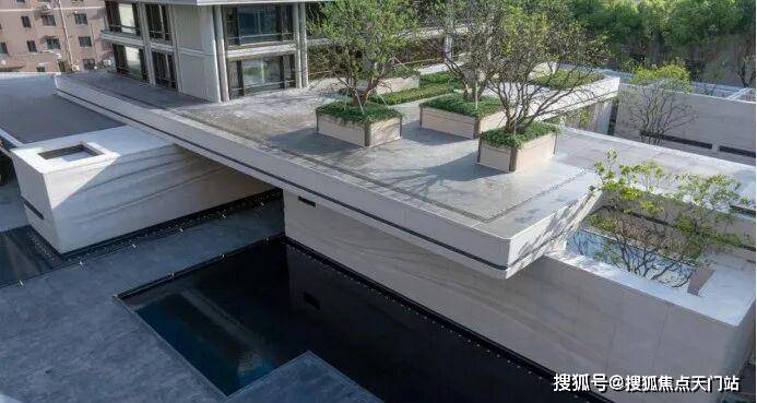 这种一般只存在于公园里的景观设计,这一次,招商将其挪入了私家园林。配合门外梧桐掩映,老静安的调性,跃然纸上。