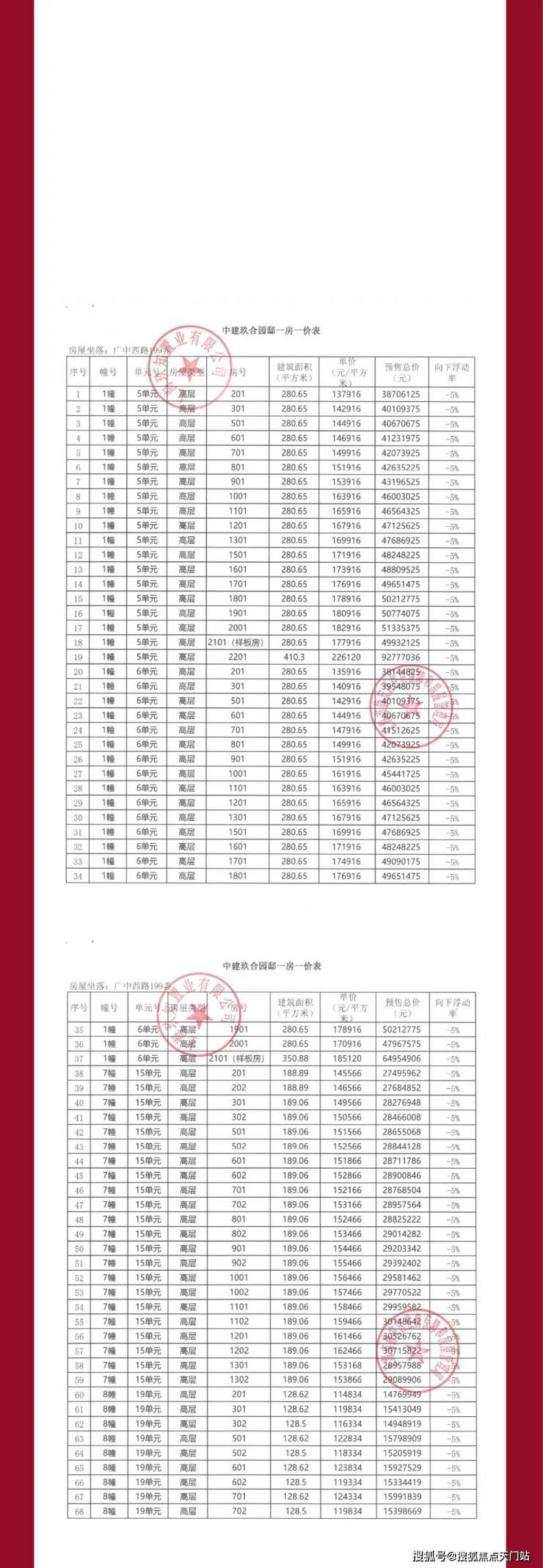 内附一房一价表