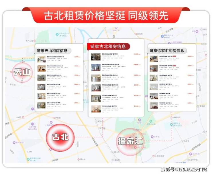 此外, 古北高租售比提升性价比 ,如古北瑞仕花园165㎡月租超3万,高于天山、徐家汇。