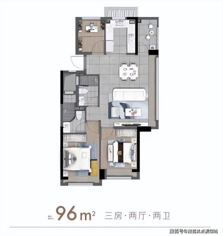 「建面约96㎡3房2厅2卫」