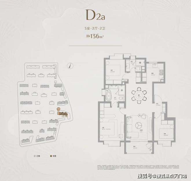 建面约195㎡3房是天安1号首次入市的产品,也是整个项目最高舒适度的产品。它位于社区的中央,楼下就是中央景观轴,视野、采光都相当出众。超大尺度感的客餐厅,东西双厨的设计,更符合当代城市菁英的需求。三套房的设计,每一个卧室都是普通豪宅主卧的尺度感和标准。没有短板的户型,真正的顶奢产品。