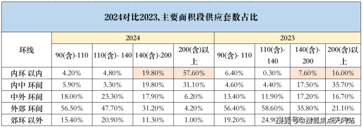 其次,根据各面积段的供应结构变化,可以发现内环内140㎡+以上的供应激增。导致这一供应变化的就是两字:需求!