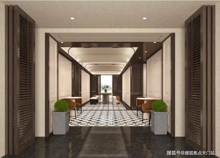 3、5#下面的架空层打造艺术长廊、共享区、休闲区和会客区,整体设计结合海派文化元素,演绎空间奢尚美学。同时满足居者未来在此的社交、休闲娱乐等多元生活场景。