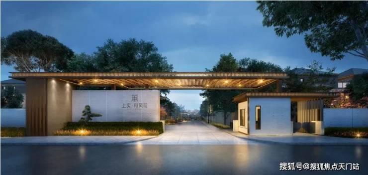 【上实·和风院】建筑外观是 新中式格调,以黑色面瓦为黛顶,整体线条简洁明快。