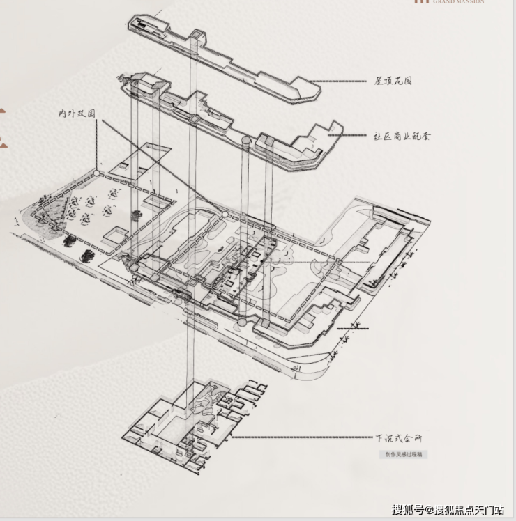 地上是7重归家路线,从口袋公园到商业烟火,穿越门厅后经过三重社区景观,最后高定入户,层层递进的礼序归家,开启一场穿越风景的归家之旅。地下是4重,从车库门头到车库玄关到入户光厅再到入户大堂,让平凡的日常场景成为尊崇身份的暗语。