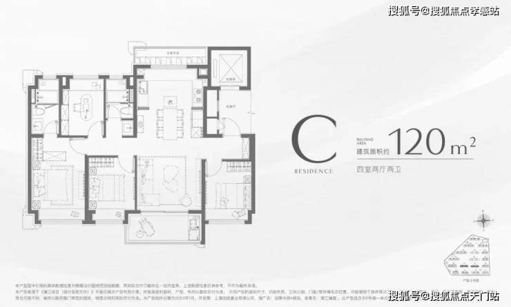 户型C| 建筑面积约120m²四房两厅两卫