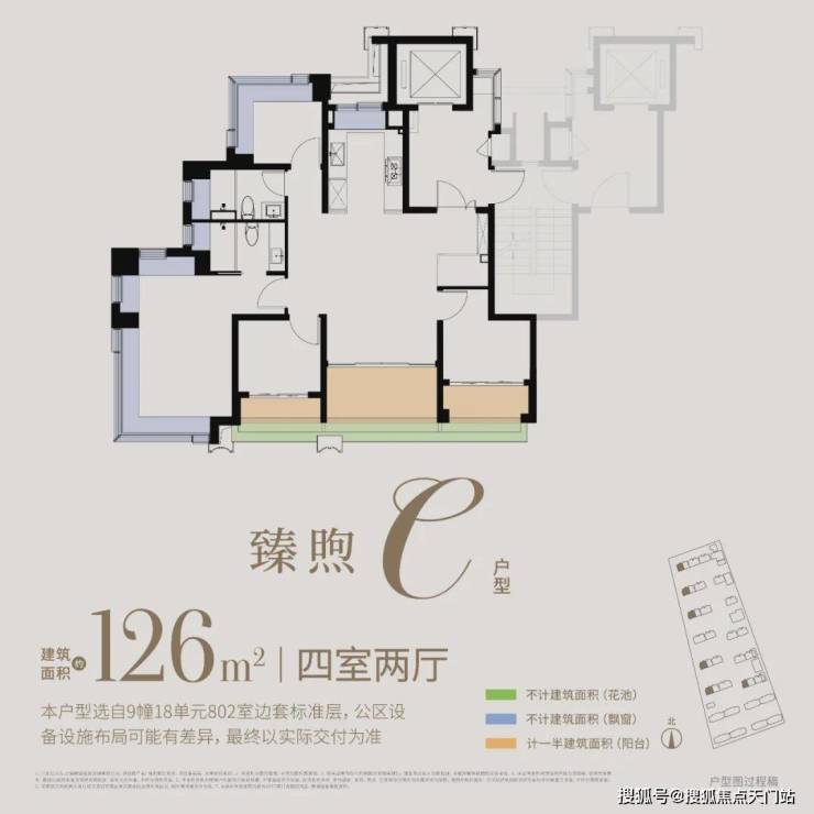 约126㎡4房:四开间朝南,附赠约30㎡,西边套一线临河,可享IMAX级观河景体验,全维度契合改善家庭的居住期待。
