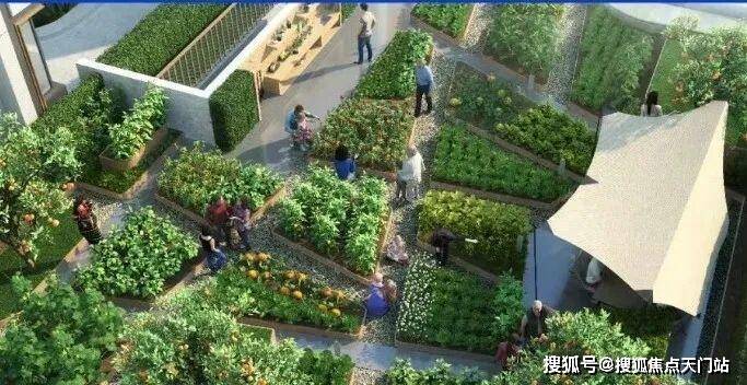 屋顶菜园:城市田园梦,人与自然的乌托邦(此处指配套用房屋顶)。一块小菜地,可以唤起人们对土地和自然的亲近感,也能让一家人在照料蔬果的时光里,创造美好、独特的共同回忆。