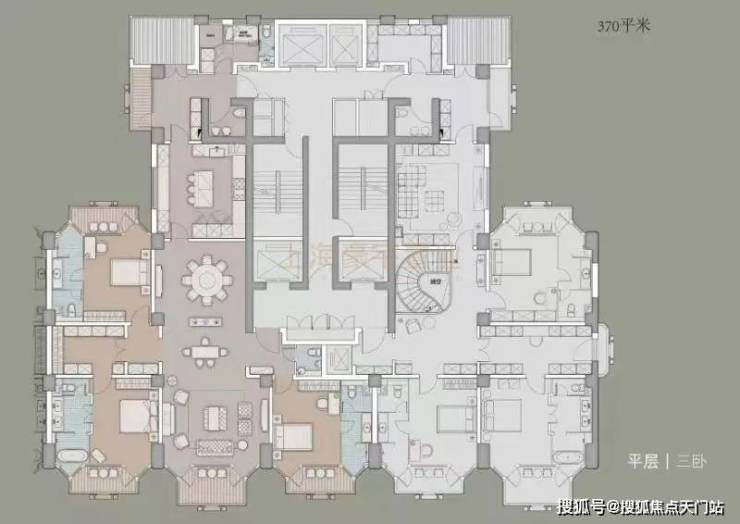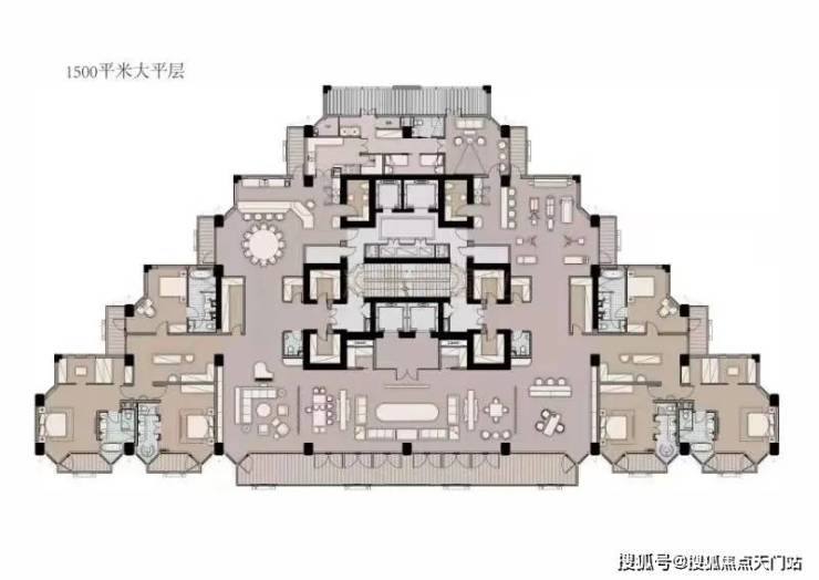 主力面积为370、750、1500㎡三个面积段,即半层、一层、半层复式、整层复式几种 ,南侧一栋住宅户型呈金字塔造型,四间套房,超大客餐厅,充分利用南向面宽,360°采光不浪费一丝一毫江景。