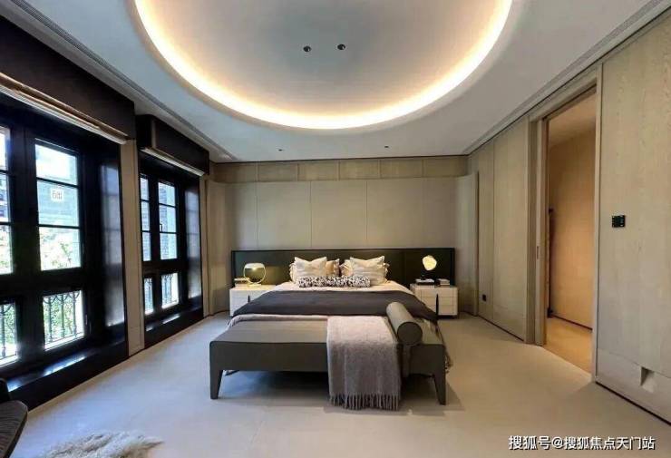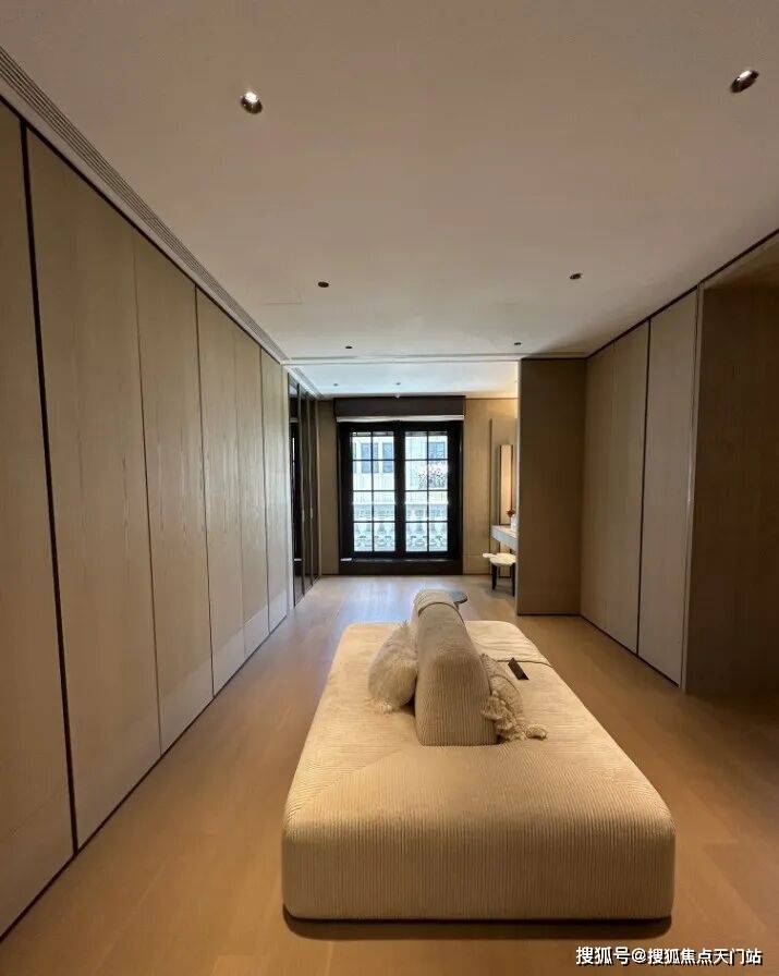 三楼整层为主卧套房,样板间设计了双开门入卧室,进入起居空间,样板间选择在这里放一些艺术装饰、设计吧台来彰显主人品味。
