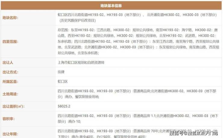 2021年2月,上海虹口城市更新建设发展有限公司(上海地产联合体)以111.35亿拿下了虹口区四川北路街道HK193-02(17街坊弘安里)、HK193-03(地下部分);北外滩街道HK300-02、HK300-03(地下部分)(历史风貌保护旧改项目)。