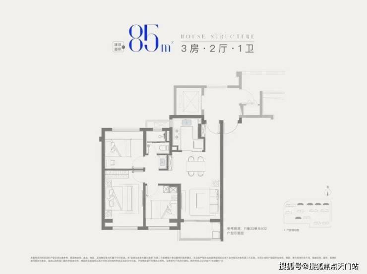 还设计出了 建面约85㎡的小三房。据说就是通过前期精准研判,深挖客户家庭结构和品质需求,创造出来的全新的、差异化的产品。凭借多年产品打造经验,户型设计方正大气,客厅餐厅南北通透,卫生间采光良好。