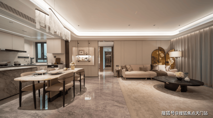 不计成本打造大量定制化米黄色石材饰面、奢玉、奢石搭配海派金属的装饰,细节与调性堪称板块标杆!