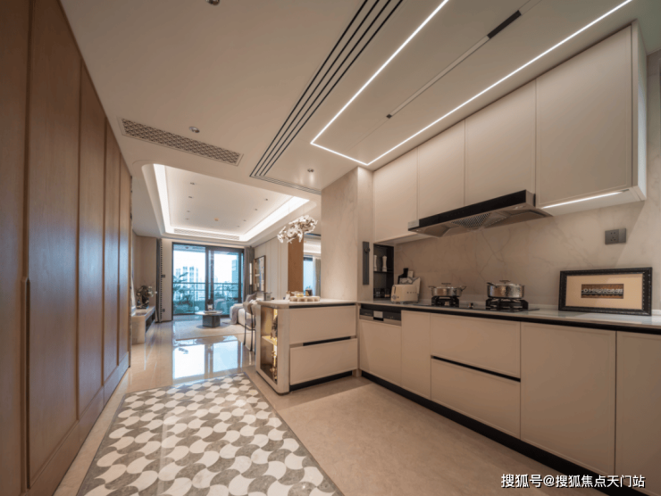 通过S墙的设计,既优化了餐厨动线,同时也增大了厨房的作业面,让整体空间得到进一步合理利用。