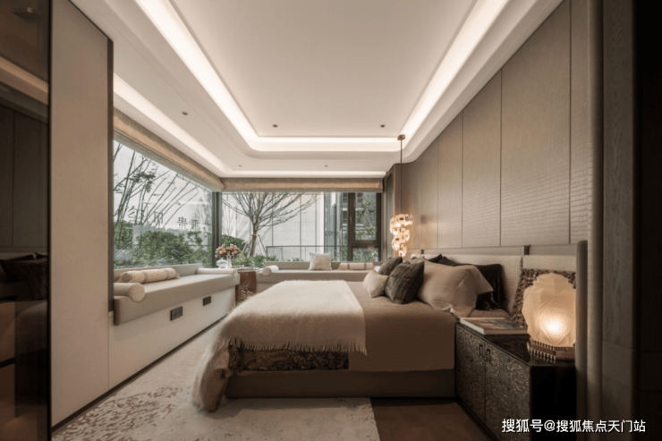 主卧约270°L形飘窗设计,将窗外的美景尽收眼底,注重美观的同时,也兼顾了实用性与舒适性,让业主在繁忙的生活中也能享受到宁静与安逸。