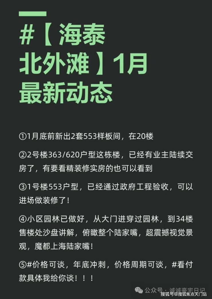 最新信息:海泰北外滩已结构封顶,首批次房源已经交付!目前主推房源是2号楼有16楼的清退房源,348㎡大平层,总价6600万!