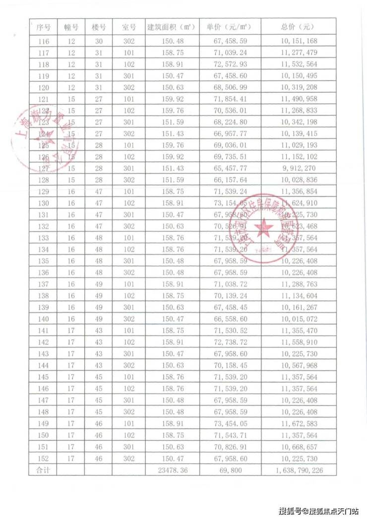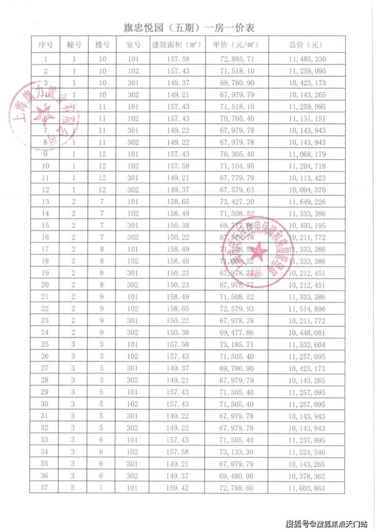 崇明某触发积分项目部分一房一价表