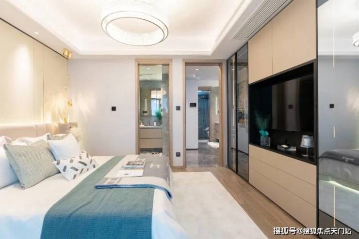 建面约104㎡的户型,能满足从二人世界到二胎生活的全生命周期需求,并且整体2-3开间朝南+客厅宽面阳台,整体的南向采光,视野以及尺度感很优秀,并不会感觉局促。