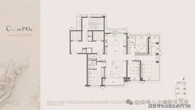 项目最小面积就是127户型起跳。不过从建筑外轮廓来看,项目小户型是2T4且有连廊,合规要提醒一下。 从南向北面积段由大到小,分别是:281/210/190/162/127户型,依次排开,具体套数可以看小编整理的户型配比图。