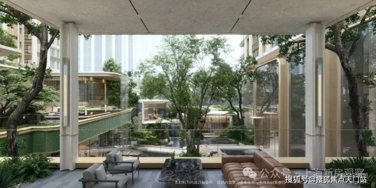这个标准比不少甲级写字楼还高,几乎跟国金中心、柏悦酒店那种顶级商用空间看齐了,这样的架空层高度, 天然的让建筑悬浮在植被之上,每户都是景观最C位。