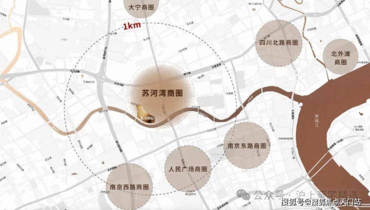项目的商业部分由美国的SOM建筑设计事务所(曾设计金茂大厦、迪拜塔等世界级知名建筑)操刀,将打造成为苏州河城市活力地标,未来串联起苏河两岸文化与商业节点,成为与南京路、淮海路平行的又一条重要的城市中轴,有利于提升苏河湾的整体形象和气质,展示出苏州河独有的水道魅力。