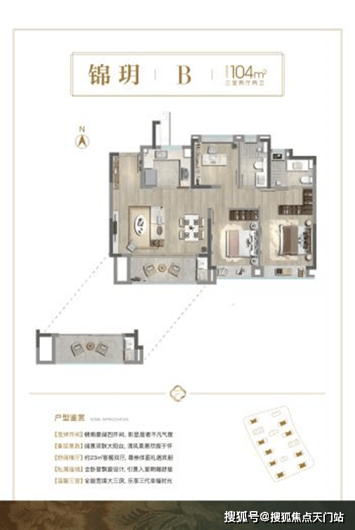 建面约104㎡3房2厅2卫