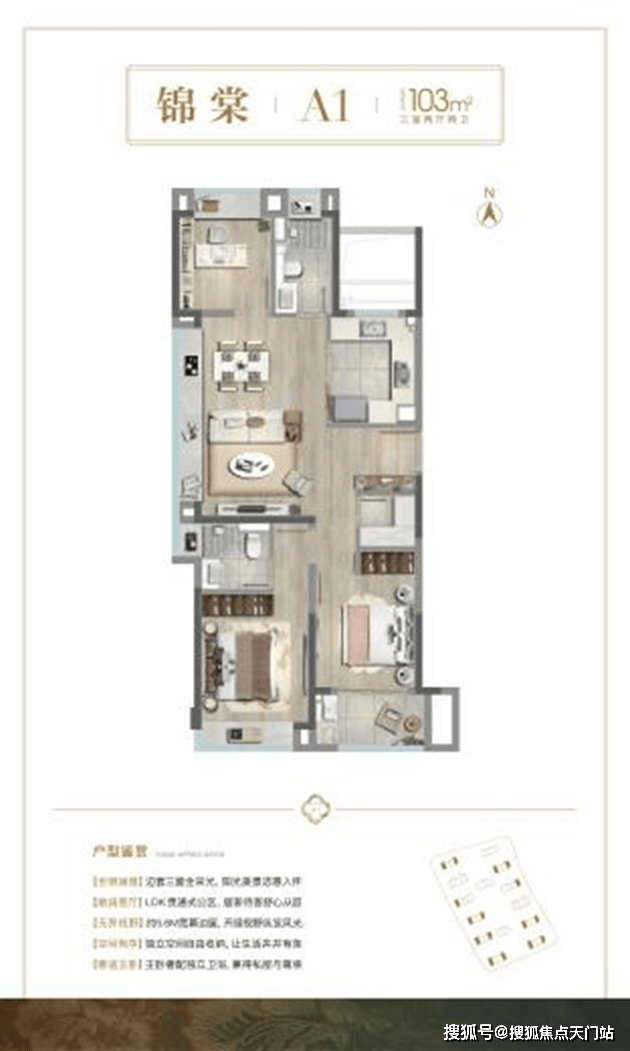 加推的3#, 两面近邻天然河道水系,占据一线滨水视野,东侧河滨公园与社区公园内景形成生态对景, 还原萦水而居的江南水乡居住体验。且端户的103㎡户型,边厅设计有效引入滨水瞰璟、荡漾诗意, “在家犹如度假”的设计理念,居住体验再升级
