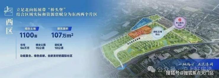“上虹桥·城市更新区”由嘉定区与上海地产集团共同推进,采用整体开发模式,品质和界面将得到更大的保障。项目一期占地面积约2500亩,分为东西两个片区。