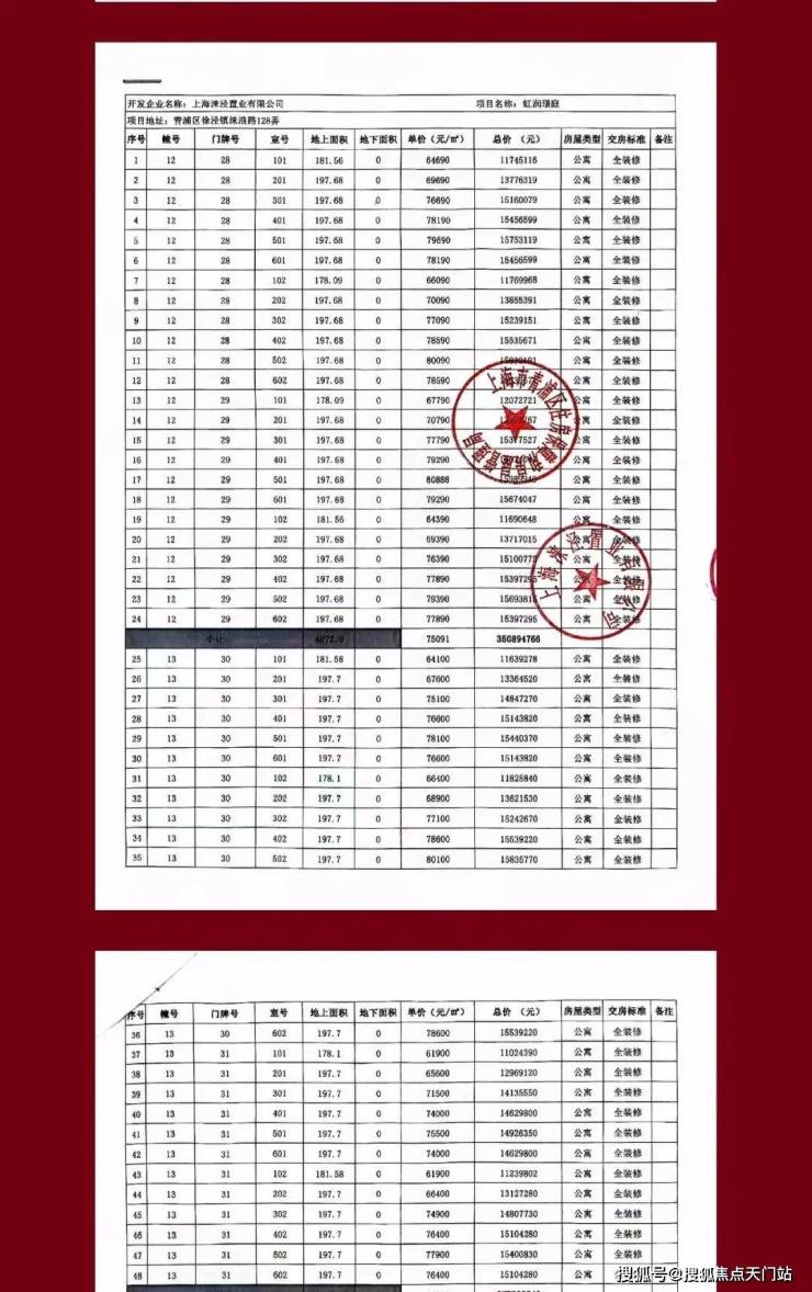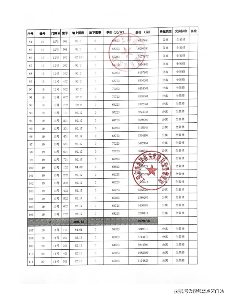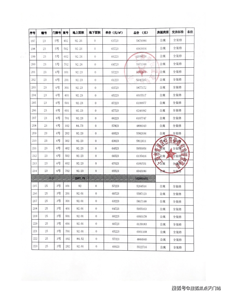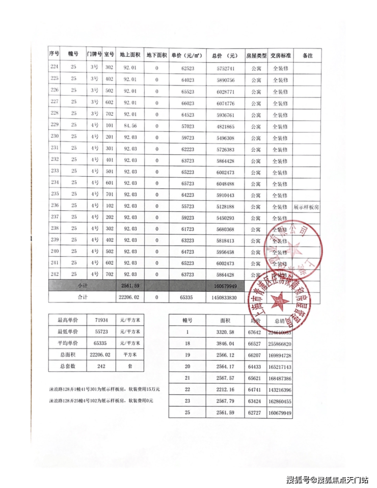 一房一价表: