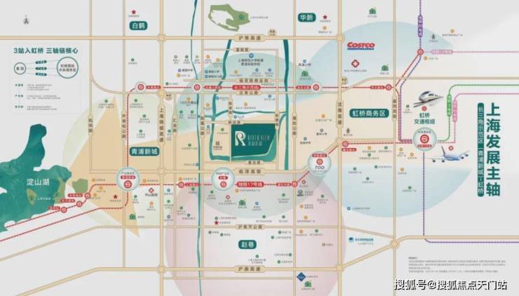 轨交17号线: 项目距赵巷地铁站约2.3km,6站直达大虹桥交通枢纽