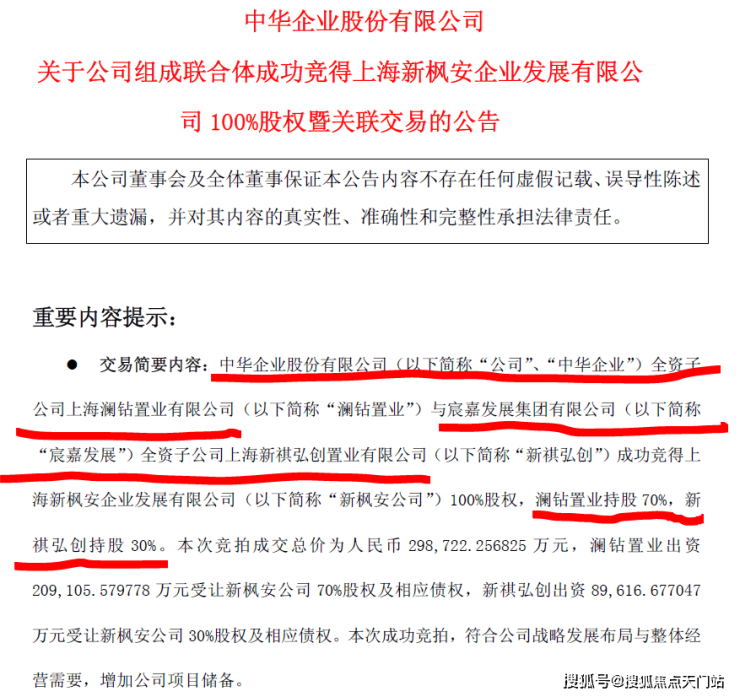 2025年9月25日,中华企业联合宸嘉发展以29.87亿元收购上海新枫安公司100%股权,正式入局徐汇东安旧改核心地块开发。